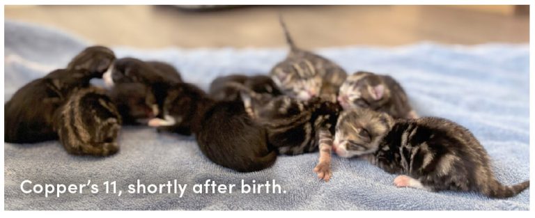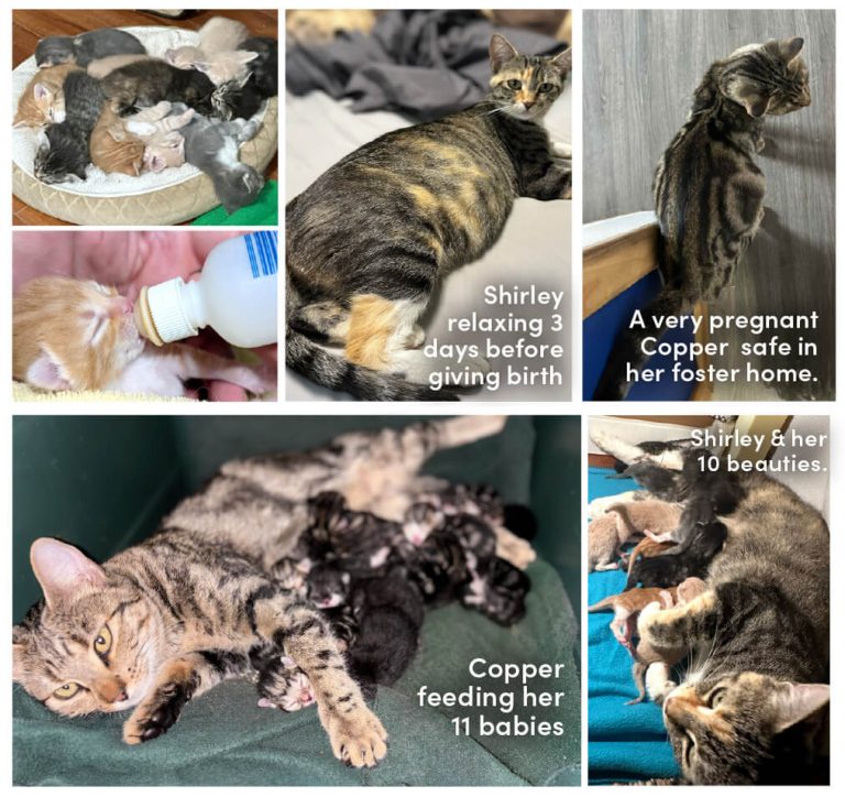 This winter, the OHS is celebrating two mother cats whose stories show the power of community support. Shirley and Copper delivered a combined twenty-one kittens. Their litters were OHS record breaking, with Shirley having ten kittens on August 29 and Copper surpassing that with eleven on November 18.